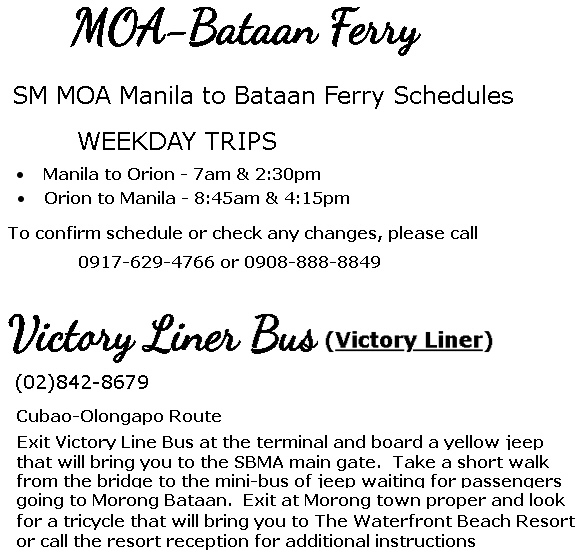 The Waterfront Beach Resort is located approximately less than 18km from Subic Safari & Ocean Adventure and is approximately 47km away from Dambana ng Kagitingan (Mt. Samat) going north.